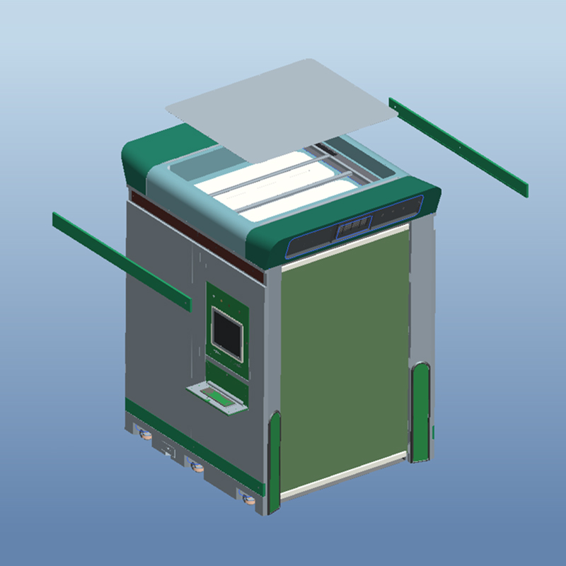 拆除包裝后,將通道機腳輪裝好(使用螺絲型號),左右共6個腳輪。將腳輪打到標準低,直至站立不滑動。將兩側(cè)面板站立,再將頂部結(jié)構(gòu)架上安裝槽卡住,座進去。(如圖1.1)