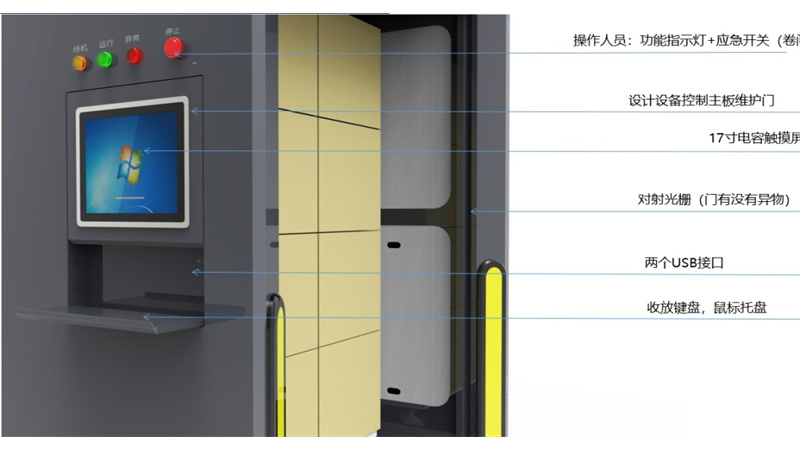 21配備急停按鈕,在發(fā)生特殊情況時,可以緊急停止設備,剎停卷閘電機,以便及時處理。